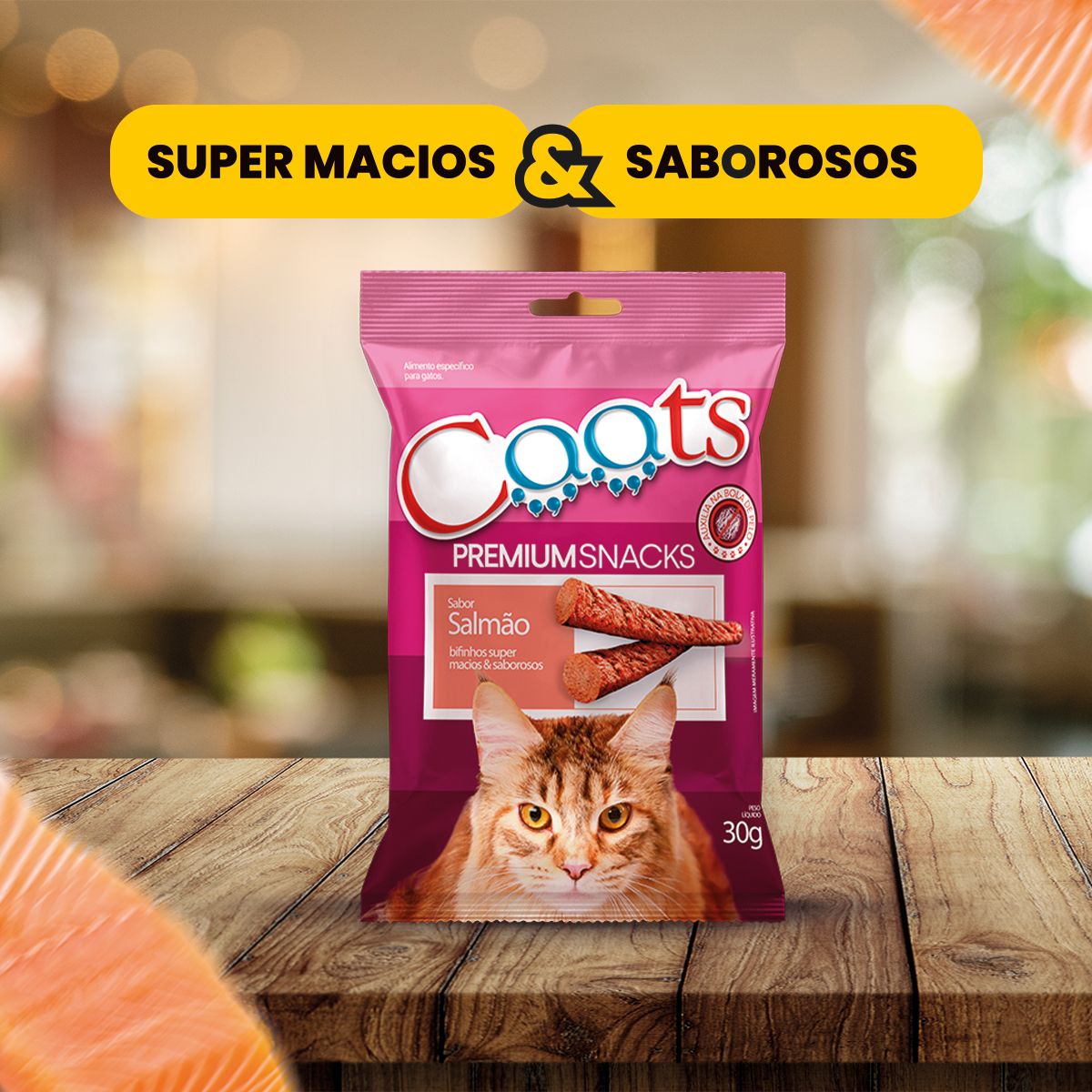 Proporcione ao seu felino uma experiência única de sabor com o Bifinho Caats Salmão, o snack macio e delicioso ideal para gatos de todas as idades. Um petisco premium que combina nutrição e prazer em cada mordida.
