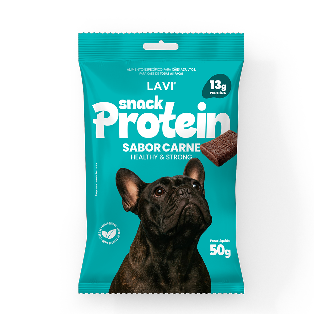 O Snack Protein Lavi® Sabor Carne é um bifinho funcional desenvolvido para oferecer mais saúde, energia e bem-estar ao seu cão. Com 13g de proteína por porção, ele é ideal para complementar a rotina alimentar com um mimo nutritivo e delicioso.