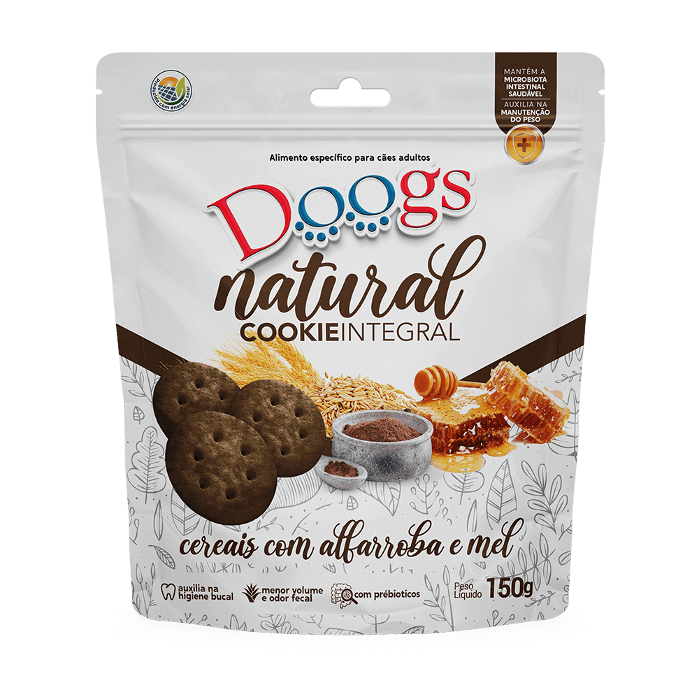 Proporcione ao seu cão um snack saudável e funcional com o Cookie Integral Cereais com Alfarroba e Mel Doogs!
