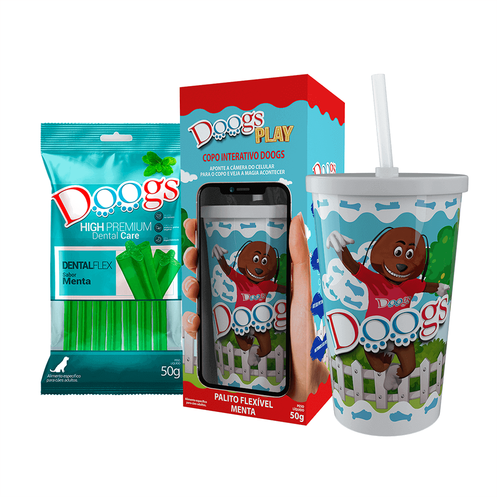 O Palito Flexível Menta 50g no Copo Interativo DOOGS é muito mais que um petisco dental: é uma experiência completa para o seu pet e para toda a família. Com sabor refrescante de menta, ajuda na higiene bucal do seu cãozinho enquanto proporciona momentos de diversão. Além do petisco, o produto inclui um copo reutilizável para bebidas e acesso ao aplicativo DOOGSPLAY por meio do QR Code, garantindo entretenimento para as crianças.