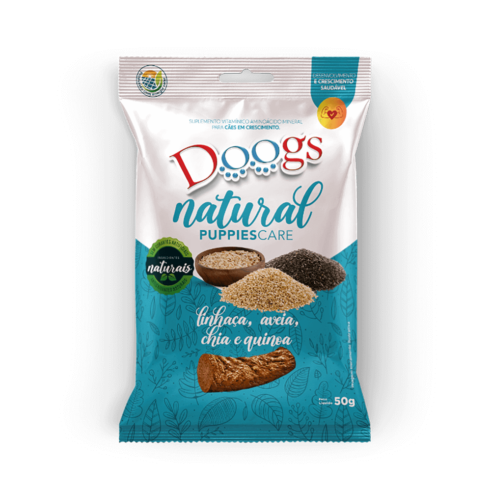 Ofereça o melhor ao seu filhote com o Suplemento Natural Doogs Puppies Care Sabor Linhaça, Aveia, Chia e Quinoa! Desenvolvido especialmente para os primeiros meses de vida, este suplemento combina ingredientes naturais e ricos em nutrientes, como linhaça, aveia, chia e quinoa, que proporcionam fibras nobres, ácidos graxos essenciais, vitaminas do complexo B assim como aminoácidos importantes para o crescimento saudável.